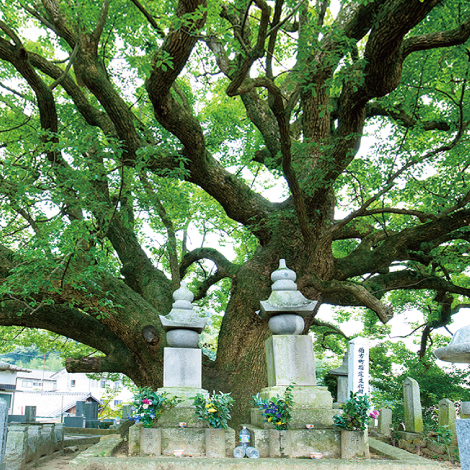 能島村上氏の村上雅房の菩提寺とされる禅興寺。伯方島にあるこの寺の墓所には大楠がそびえ、その根元に雅房夫妻の墓があったと伝えられている。