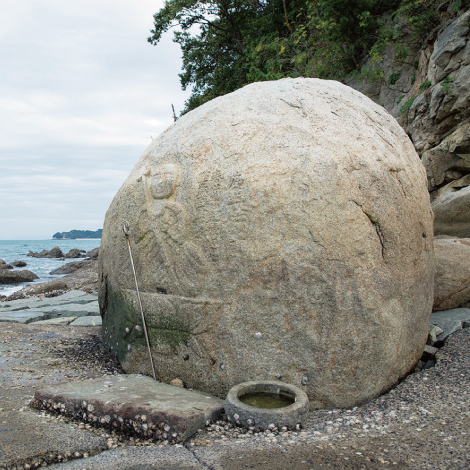 美可崎城は因島の岬に築かれた海の関所であり、船隠しの入江などが今も残る。その城の武将と船で通りかかった娘との伝説を刻む石仏が、鼻の地蔵として語り継がれている。