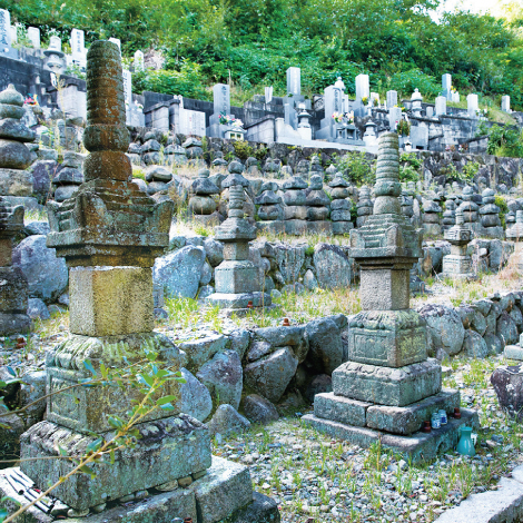 因島村上氏の本拠であった、因島の中庄に造営された菩提寺の裏山にある墓地。かつて分散していた一族の墓とされる宝篋印塔18基と、多くの五輪塔がここに集められている。