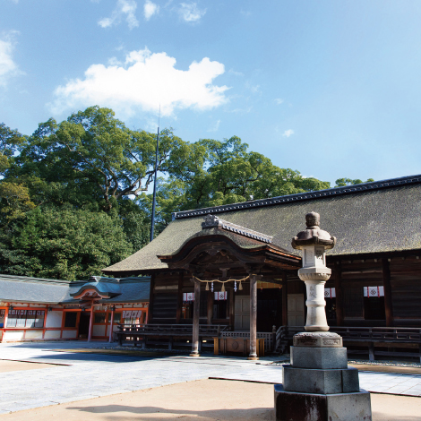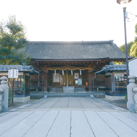 来島城の城下町として史料に登場する、大濱地区に鎮座する神社。1524年に同社が造営されたことを記した棟札には、「在来島城村上五郎四郎」と書かれており、村上氏が来島城を居城としていたことを物語っている。